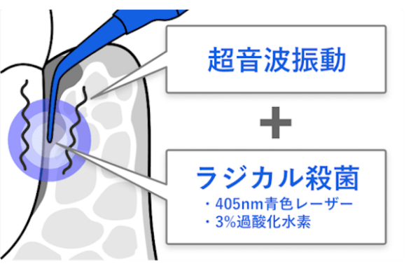 従来の超音波振動による治療だけでは、歯周病が重度に進行した場合、歯周ポケットの奥に歯石が残りやすく、十分な改善が難しくなることがあります。