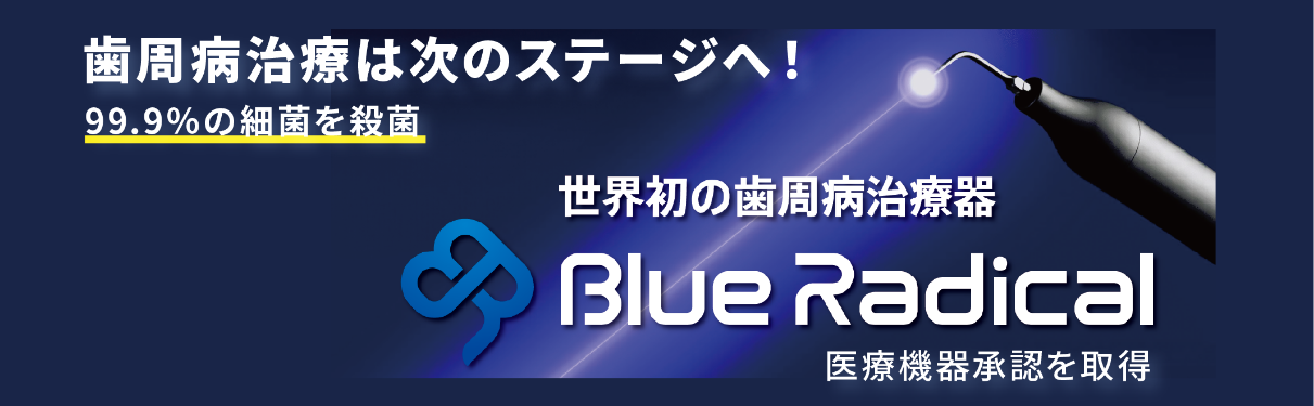 「ブルーラジカル P-01」は、重度の歯周病に対応するために開発された、世界初の非外科的治療機器です。厚生労働省にも認可されている安心の医療機器で、手術をせずに歯周病の改善が期待できます。